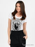 Стильная футболка с короткими рукавами и округлым вырезом горловины. Приталенный силуэт. Выполнена из слегка эластичного хб материала. Полочка украшена объемным бархатистым принтом с серебристыми стразами. Прекрасный повседневный вариант!