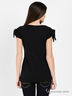Модная футболка с округлым вырезом горловины и коротким рукавом реглан с завязками. Полочка украшена вышивкой и стразами. Отличный вариант для создания стильного образа.