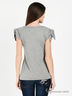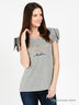 Модная футболка с округлым вырезом горловины и коротким рукавом реглан с завязками. Полочка украшена вышивкой и стразами. Отличный вариант для создания стильного образа.