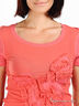 Круглая горловина. Короткие рукава. На полочке крупные текстильные нашивки.