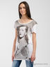 Замечательная футболка с короткими рукавами и округлым вырезом горловины. Спереди модель декорирована контрастным принтом. Сзади изделие дополнено эффектной драпировкой. Отличный вариант на каждый день.