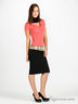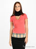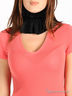 Трикотажная футболка из нежного, приятного на ощупь материала ярко-розового цвета с клубничным оттенком. Глубокая круглая горловина. Короткие рукава. В комплект входит жабо на бархатных завязках из воздушного черного шифона шифона.