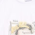 Детали: круглый вырез, короткие рукава-фонарики, низ посажен на тонкую резинку, полочка украшена оригинальным принтом