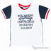 Детали: круглый вырез, короткие рукава, полочка украшена оригинальным принтом и нашивкой