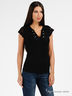 Оригинальная футболка прилегающего силуэта выполнена из высококачественного итальянского трикотажа. Фигурный вырез горловины декорирован гипюровым кружевом и пуговицами, короткий рукав выполнен из нежного кружевного гипюра.