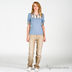 Футболка из мягкого трикотажа с коротким рукавом фонарик. Вырез декольте отделан трикотажной лентой.