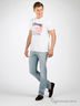 Трикотажная футболка белого цвета. Круглая горловина. Короткие рукава. На полочке оригинальный принт.