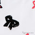 Детали: застежка на кнопки на спине, короткий рукав, полочка декорирована жабо и набивным рисунком с пайетками