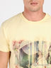 Детали: округлый вырез горловины, короткие рукава, полочка изделия украшена принтом