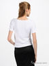 Трикотажная футболка из удивительно нежного, приятного на ощупь материала, который прекрасно поддерживает форму. V-образная горловина декорирована кружевом. Короткие рукава. Полочка украшена стразами.