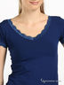Трикотажная футболка из удивительно нежного, приятного на ощупь материала, который прекрасно поддерживает форму. V-образная горловина и короткие рукава декорированы кружевом в тон.