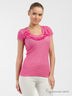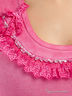 Отличная футболка с короткими рукавами и фигурным вырезом горловины. Модель выполнена в однотонной расцветке и дополнена рюшами по горловине. Прекрасный вариант на каждый день.