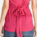 Женственная модель из легкого трикотажного полотна. С V-образным вырезом. Спереди декорирована задрапированными деталями и вшитым поясом, который завязываеться сзади в бант.