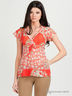 Очаровательная футболка с короткими рукавами и глубоким вырезом декольте. Изделие выполнено в яркой, контрастной расцветке. Отличный вариант для создания модного, повседневного образа.