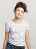 Футболка в горошек с короткими рукавами, присборенными по окату, и круглым вырезом. Размер по росту в см.