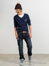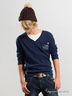 Футболка с длинными рукавами и V-образным вырезом. Оригинальный принт и планка застежки на пуговицы. Размер по росту в см.