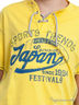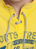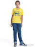 Футболка с короткими рукавами и вырезом со шнуровкой в люверсах. Принт спереди. Контрастная отстрочка. Нашивка внизу. Размер по росту в см.