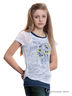 Футболка 2 в 1: нижний однотонный топ с борцовской спинкой и верхняя футболка с эффектом деворе и принтом спереди. Круглый вырез и короткие рукава. Низ верхней футболки с боковыми планками для сборки. Размер по росту в см.