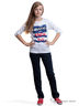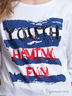Футболка из мягкого трикотажа с ярким принтом спереди. Круглый вырез. Рукава 3/4 с планками для фиксации отворотов. Размер по росту в см.