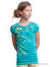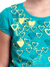 Футболка с круглым вырезом и короткими присборенными рукавами. Декоративные объемные аппликации сердечек и принт спереди. Размер по росту в см.