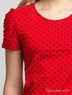 Футболка в горошек с короткими рукавами, присборенными по окату, и круглым вырезом. Размер по росту в см.