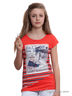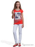 Футболка с ярким принтом спереди и на плече сзади. Круглый вырез и короткие рукава. Размер по росту в см.