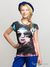 Футболка с круглым вырезом и короткими рукавами. Разноцветный принт спереди и сзади. Размер по росту в см.