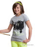 Футболка с круглым вырезом и короткими рукавами. Принт с заклепками спереди. Вырез-капелька из кружева с контрастной окантовкой сзади. Размер по росту в см.