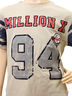 Футболка с круглым вырезом и короткими рукавами в полоску. Большой принт спереди и маленький принт под вырезом сзади. Размер по росту в см.