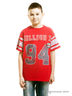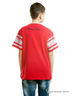 Футболка с круглым вырезом и короткими рукавами в полоску. Большой принт спереди и маленький принт под вырезом сзади. Размер по росту в см.
