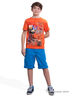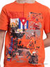 Футболка с короткими рукавами и круглым вырезом с планкой застежки на пуговицы. Разноцветный принт спереди. Размер по росту в см.