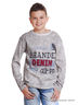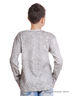 Футболка из меланжевого трикотажа с пятнистым узором. Длинные рукава, круглый вырез. Принт и аппликация спереди.