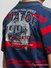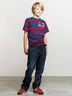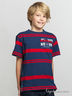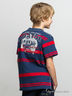 Футболка в контрастную полоску с короткими рукавами и круглым вырезом. Принт спереди и сзади. Размер по росту в см.
