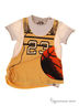 Оригинальная футболка"два в одном"-удачный выбор для Вашего маленького модника! Необычность модели заключается в том, что за основу взята однотонная футболка, а сверху одевается яркая майка в стиле "баскетбол", сточенная по плечевому и боковым швам. Модель имеет короткий рукав и округлый вырез горловины, оформленные контрастной тканью. Стильно и необычно!