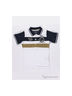 Футболка-поло с короткими рукавами и отложным воротником. Спереди изделие дополнено застежкой на пуговицы и контрастным принтом. Отличный вариант на каждый день.
