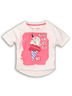 Трикотажная футболка для девочки с круглым вырезом горловины и коротким рукавом. Модель декорирована принтом.