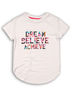 Футболка для девочки с короткими рукавами и круглым вырезом горловины. Декорирована модель принтом.