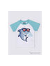 Футболка с короткими рукавами и округлым вырезом горловины. Изделие выполнено в яркой расцветке и дополнено принтом контрастной расцветки. Отличный вариант на каждый день.