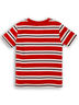 Футболка для мальчика с короткими рукавами и круглым вырезом горловины. Декорирована модель принтом в полоску.