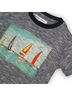 Футболка для мальчика прямого кроя. Модель с коротким рукавом и круглым вырезом декорирована принтом.