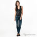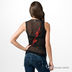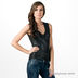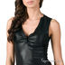 Стильный топ "под кожу" с V-образным вырезом горловины планкой на пуговицах. Спинка топа выполнена из материала-сетки и украшена аппликацией из пайеток в виде молнии.