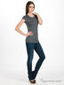 Детали: округлый вырез горловины дополнен трикотажной лентой, полочка декорирована стразами в виден надписи логотипа бренда
