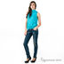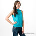 Стильный топ свободного кроя без рукавов с воротником-стойкой, который сзади завязывается на бант. У топа облегающий пояс.