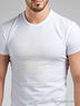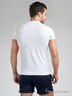 Классическая белая мужская футболка. Округлый горловой вырез на манжете из эластичного трикотажа. Спереди декорирована рисунком - аппликацией.