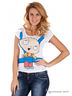 Превосходная футболка, выполненная из комфортного однотонного материала. Модель с округлым вырезом горловины оформлена контрастным рисунком. Отличный вариант для повседневного использования.