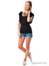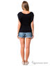 Прекрасная футболка с округлым вырезом горловины и короткими рукавами. Модель украшена оборками и кружевом. Отличный вариант для повседневной носки.