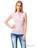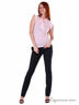 Очень женственная футболка приятной расцветки - это отличная вещь на каждый день. Модель украшена рюшами и нежным бантиком на шее. Футболка приталенного покроя, отлично будет смотреться с классическими юбками, брюками и современными джинсами.