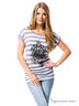 Очаровательная женственная футболка с округлым вырезом горловины и короткими рукавами. Свободный, немного приталенный крой не сковывает движения, позволяя чувствовать себя комфортно и уверено весь день. Спереди контрастный интересный принт. Стильный эффектный вариант, который будет отлично смотреться с юбками и брюками.