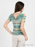 Стильная футболка приталенного силуэта с оригинальным вырезом горловины и коротким рукавом выполнена из эластичного вискозного трикотажа. Декоративная металлическая вставка. Будьте в центре внимания каждый день.