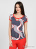 Яркая футболка приталенного силуэта с округлым вырезом горловины и коротким рукавом выполнена из эластичного вискозного трикотажа. Оригинальный вырез "капля". Изделие украшено рисунками. Будьте неповторимой.